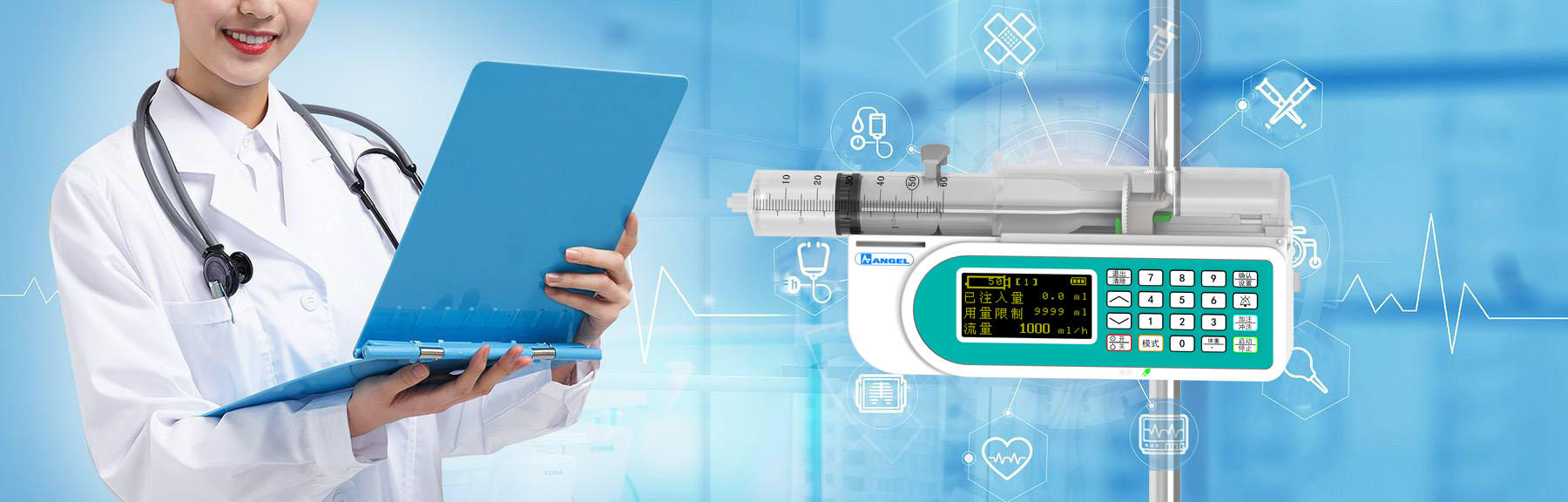 公司的系列产品有:输液泵、微量注射泵、便携式微量注射泵、电子输注泵、肠内营养泵、输液加热器、输注无线监护管理系统等,是目前国内医用泵产品线最齐全的生产厂家之一。